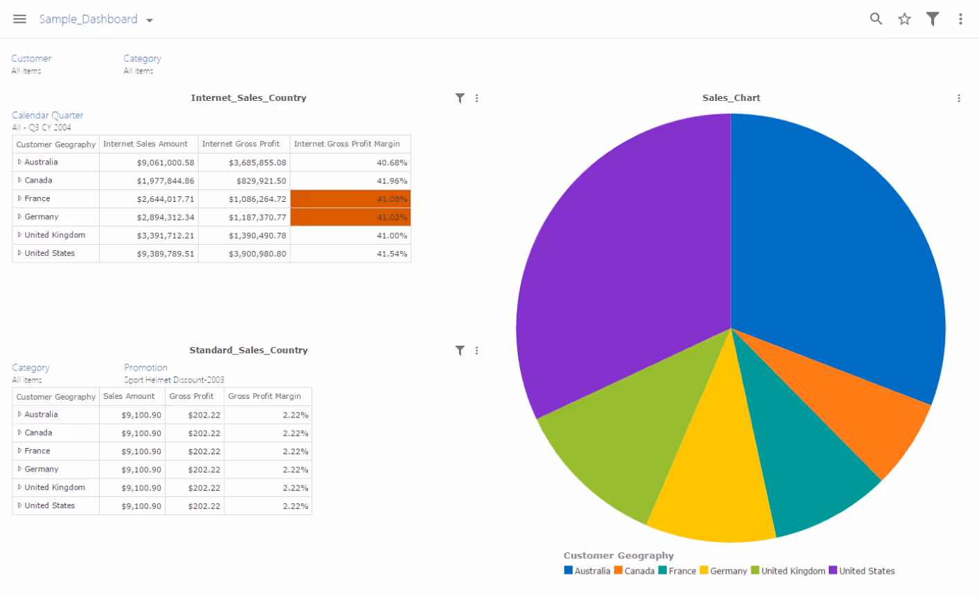 If your analysis or drill-through spans more than one screen, a screen icon appears, allowing you to specify which screen you want to view. This icon only appears if it is needed.