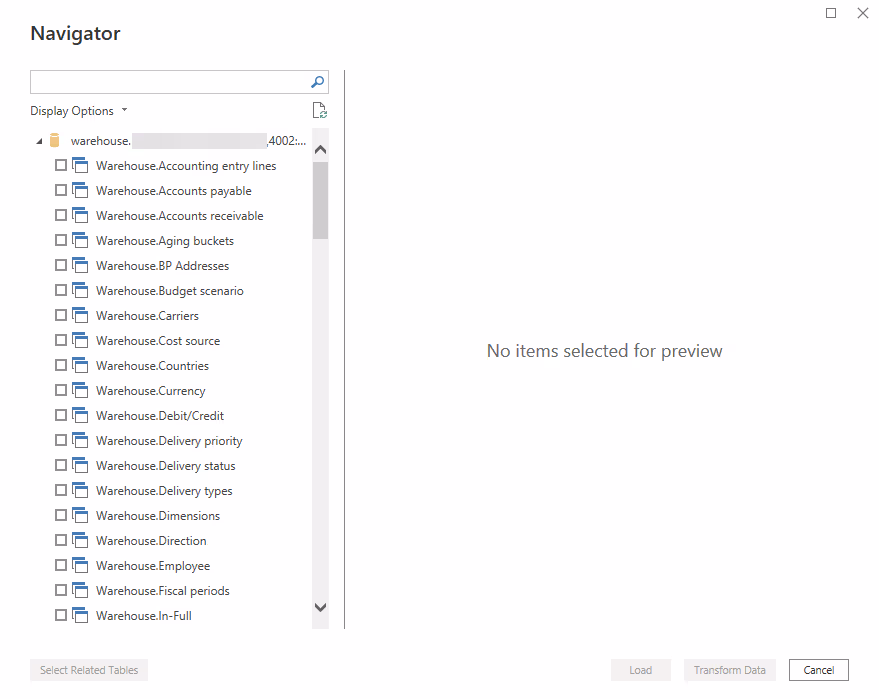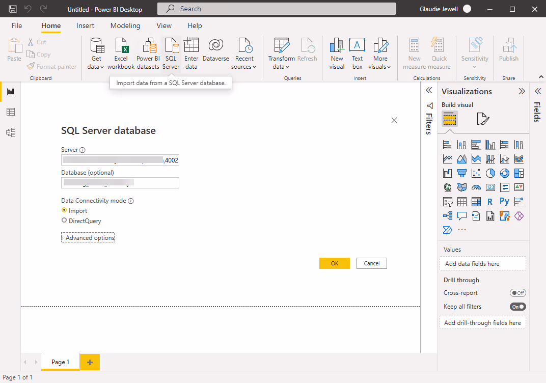 In Power BI connect to SQL Server. Provide the Server and database details. Click Ok.