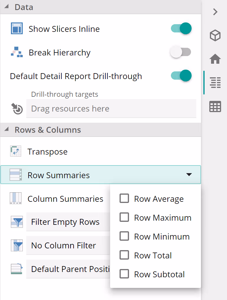 - If more than one target report is specified, the first defined drill-through target report is used when double-clicking. Subsequent reports can be accessed by right-clicking on the cell.