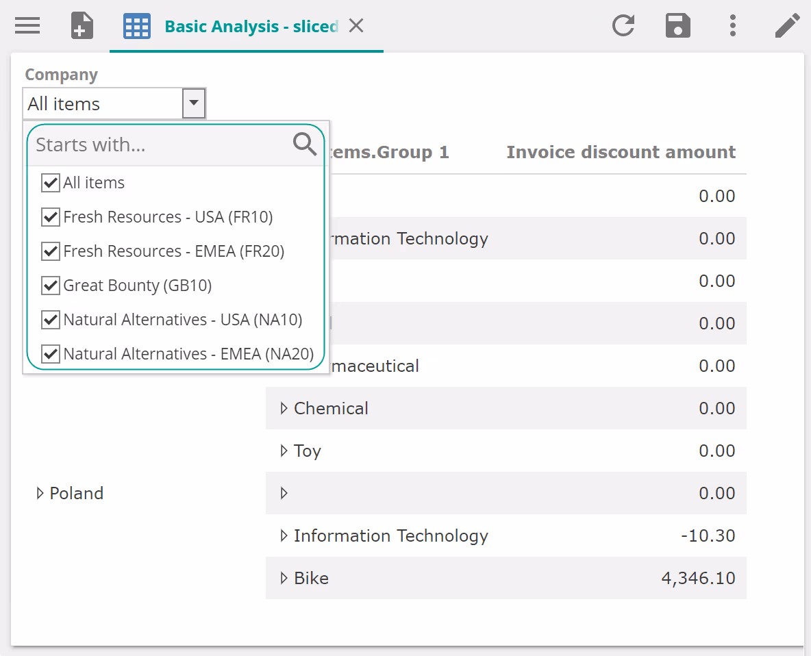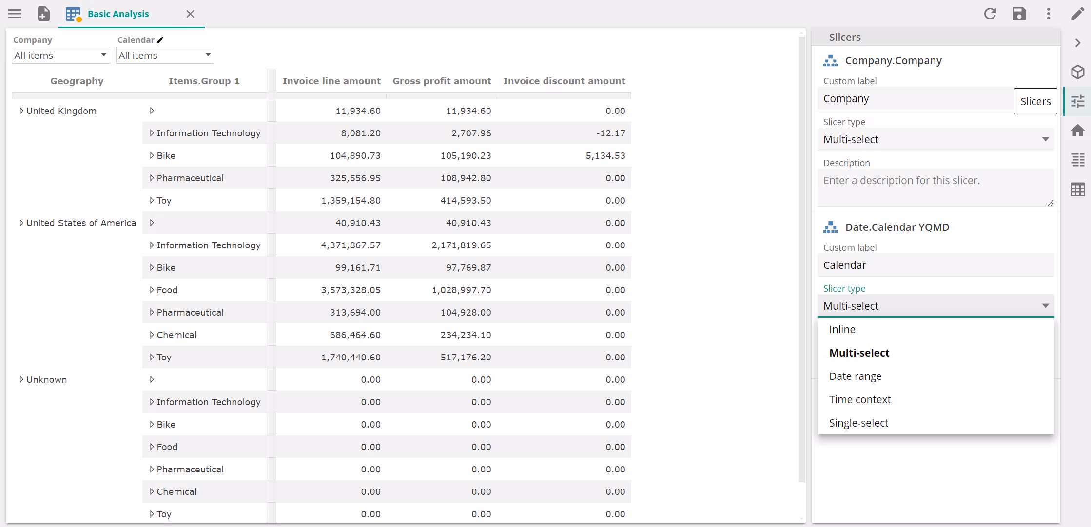 - Time context - This slicer allows you to specify a context period from a single drop-down list