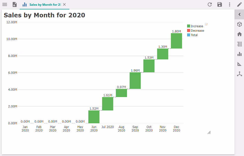 - For charts that display 100% status progress (for example, Sales vs. Target progress in a quarter).