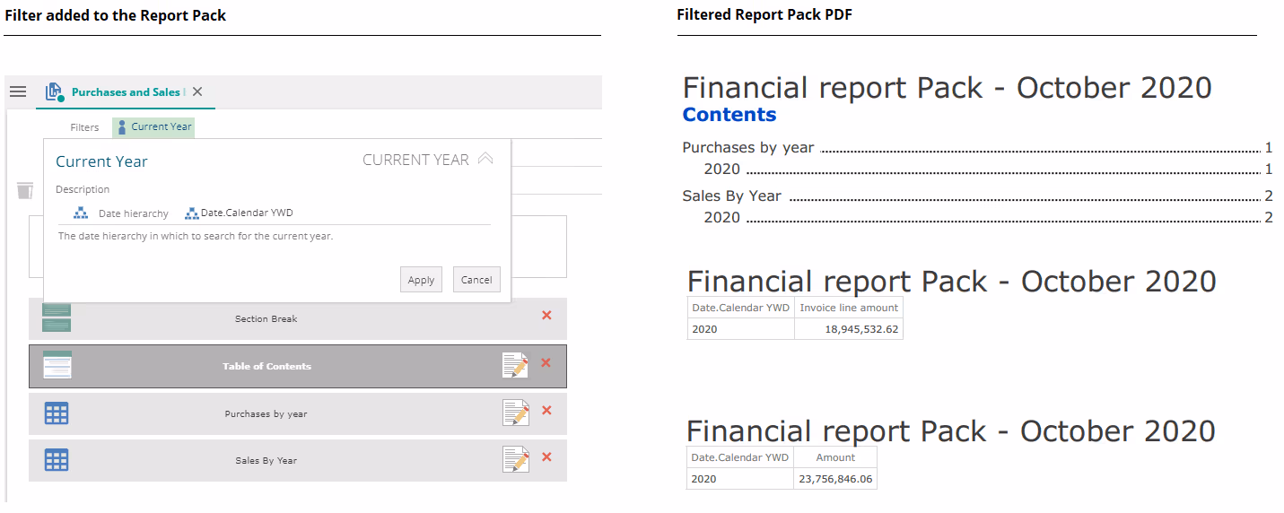 Report pack filters and slicers