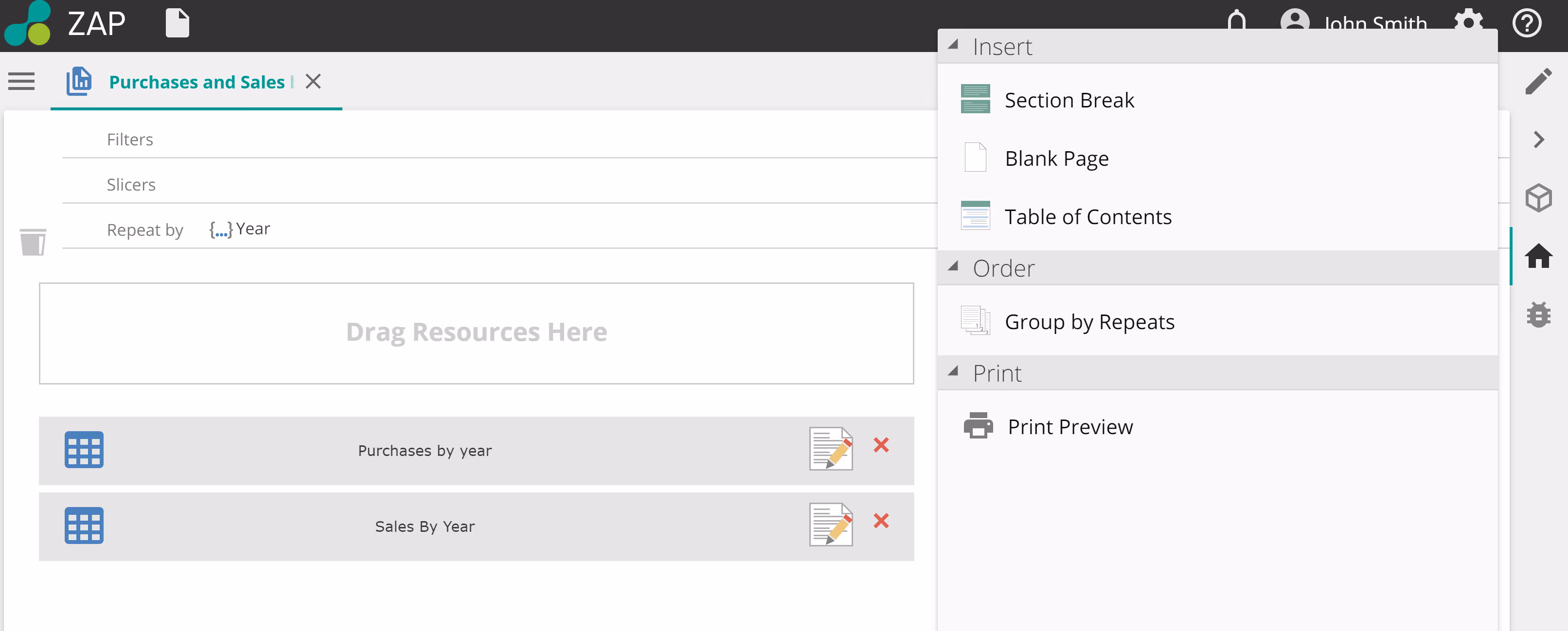 Report packs allow you to produce high-quality, printable reports consisting of Zap Data Hub resources. Resources that can be bundled includes: analyses, scorecards, dashboards, images, drill-throughs reports, and rich text resources. Users can include title pages, table of contents, section breaks and images such as company logos in their report packs making them comprehensive business documents.
