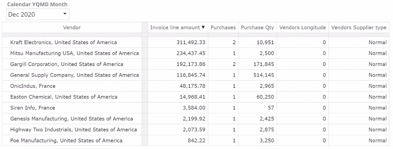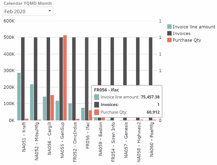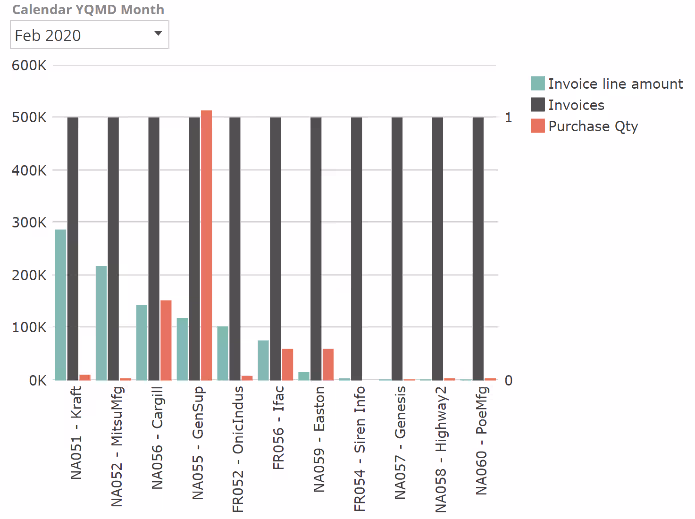 The chart now shows as follows, and we can see that we have only one invoice across all of our vendors for the selected month.