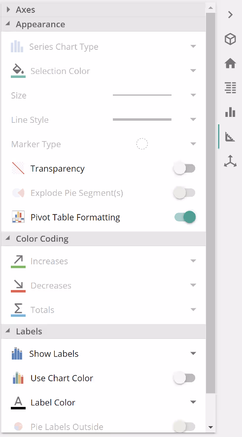 Another interesting option from the Appearance section is Pivot Table Formatting. This option synchronizes to the chart any applicable formatting changes made on the table, importantly including any conditional formation, which we'll get to shortly.