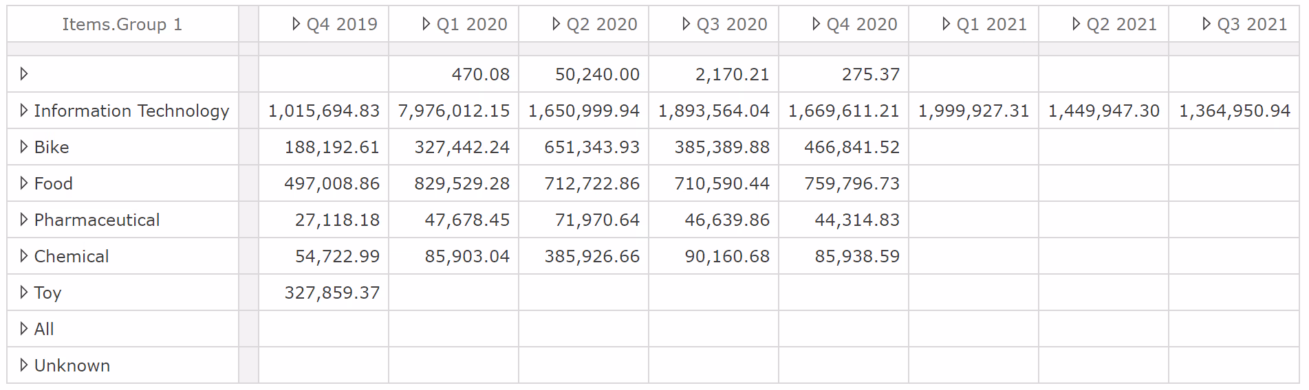 The result of hiding the Items.Group 1 subtotals are as follows.