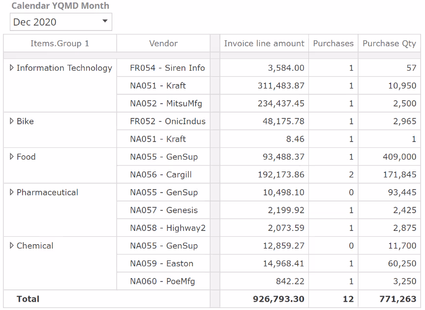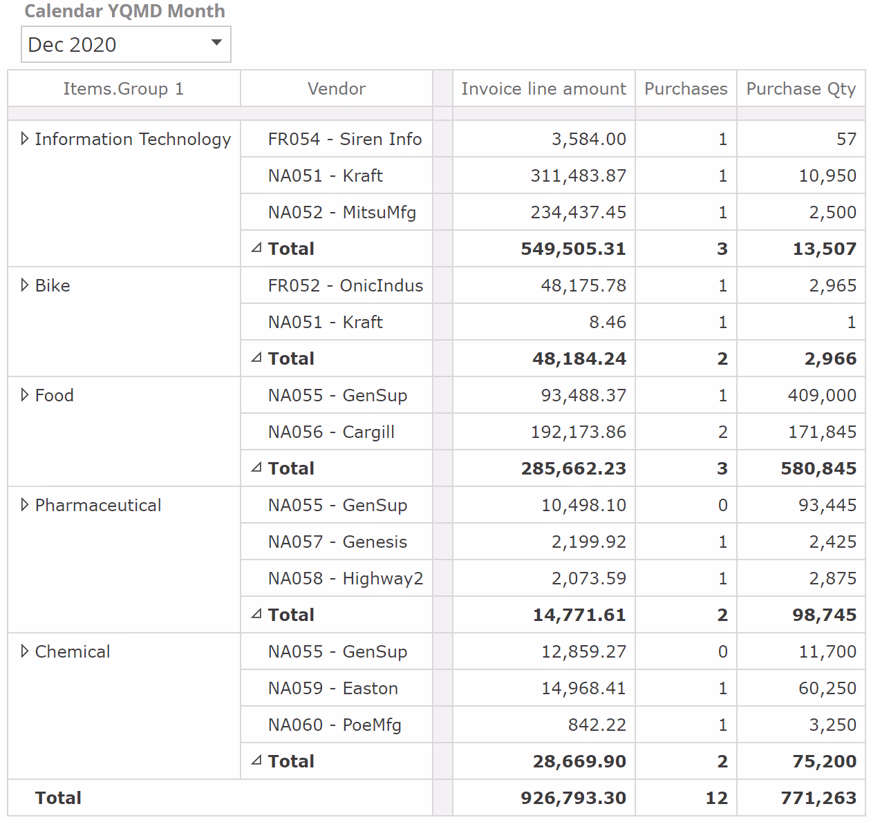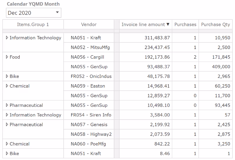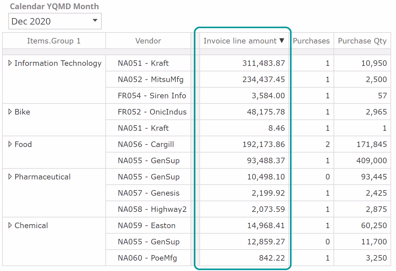As you can see, the vendors are sorted within each item group's context. This may or may not be what you're looking for. If this is not what you require for a given table, you can change this behavior with the Break Hierarchy option.