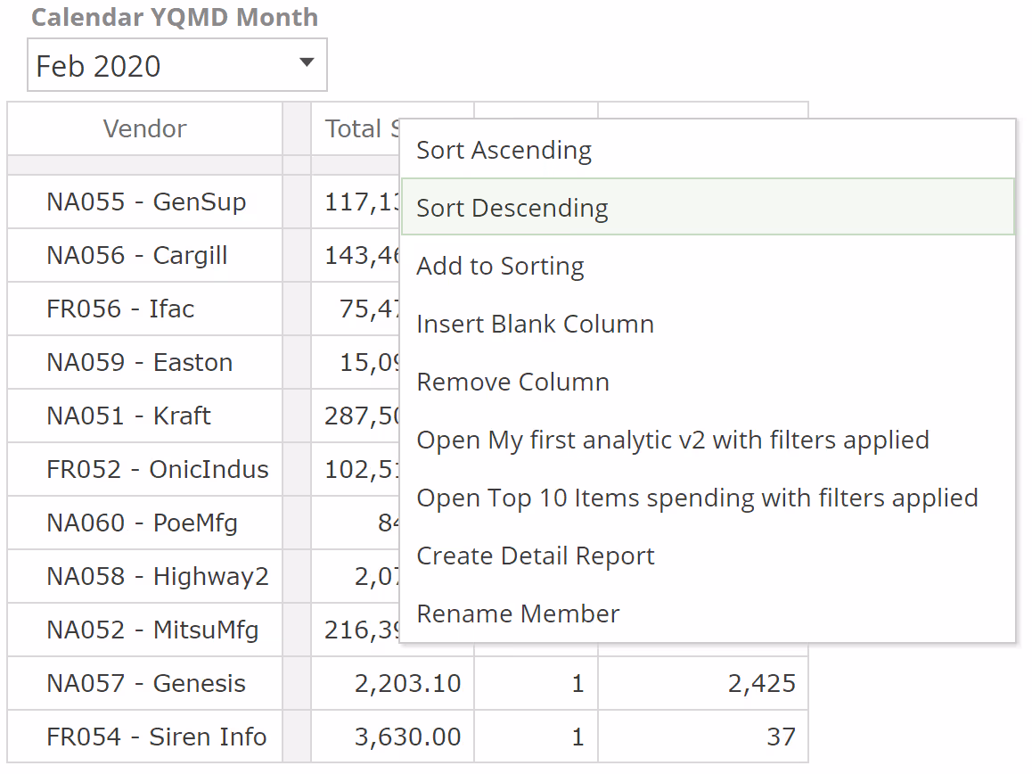 In this example, the count of top vendors is at the end-user's discretion.