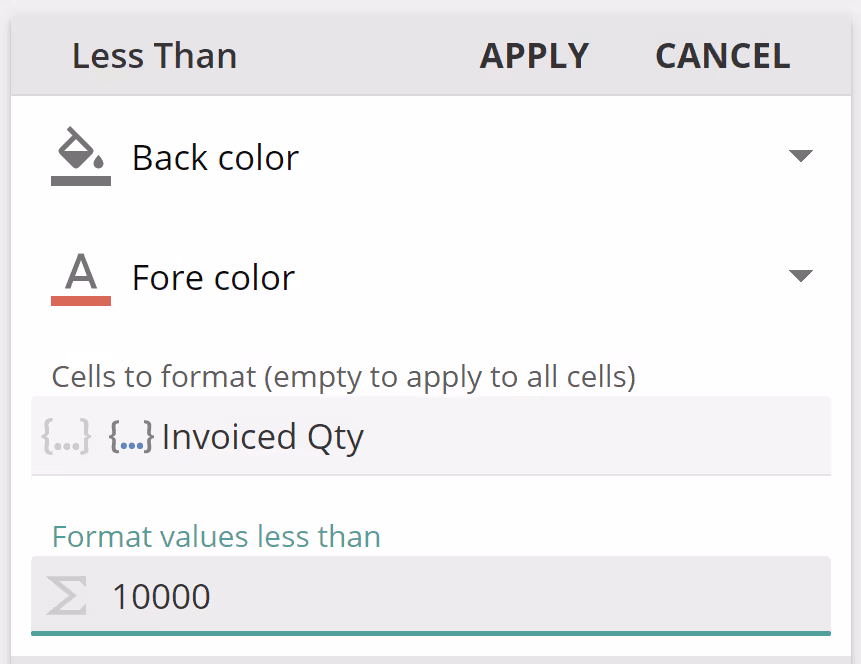 Cell Calculation Functions can be applied in the same way as Conditional Formatting Functions.