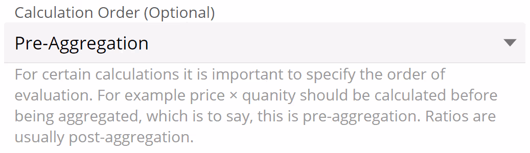 Furthermore, as from the example at hand, scenarios where Calculation Order requires configuration usually result in identifiably wrong numbers. For additional examples and further discussion of Calculation Order, see the Calculation Order section from the Analytic Functions article.
