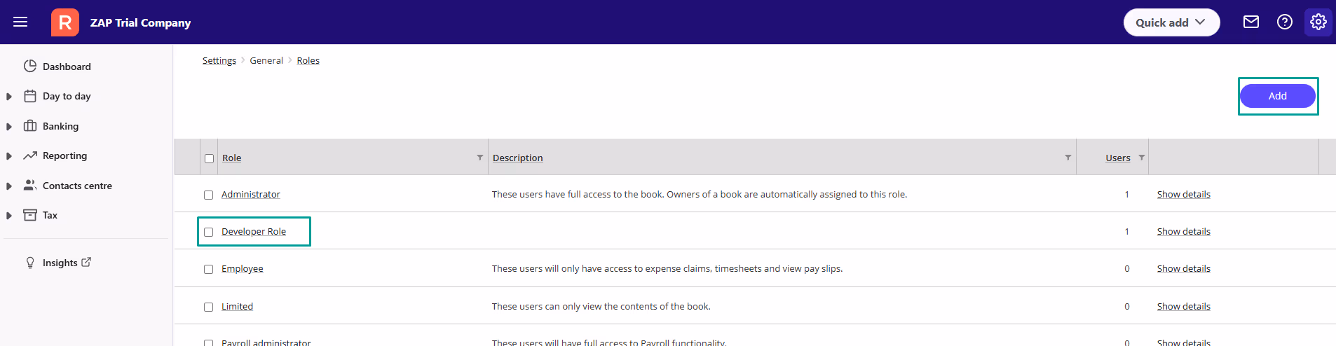 Follow the steps below for creating a custom Role for the purposes of accessing data from the Reckon One data source:
