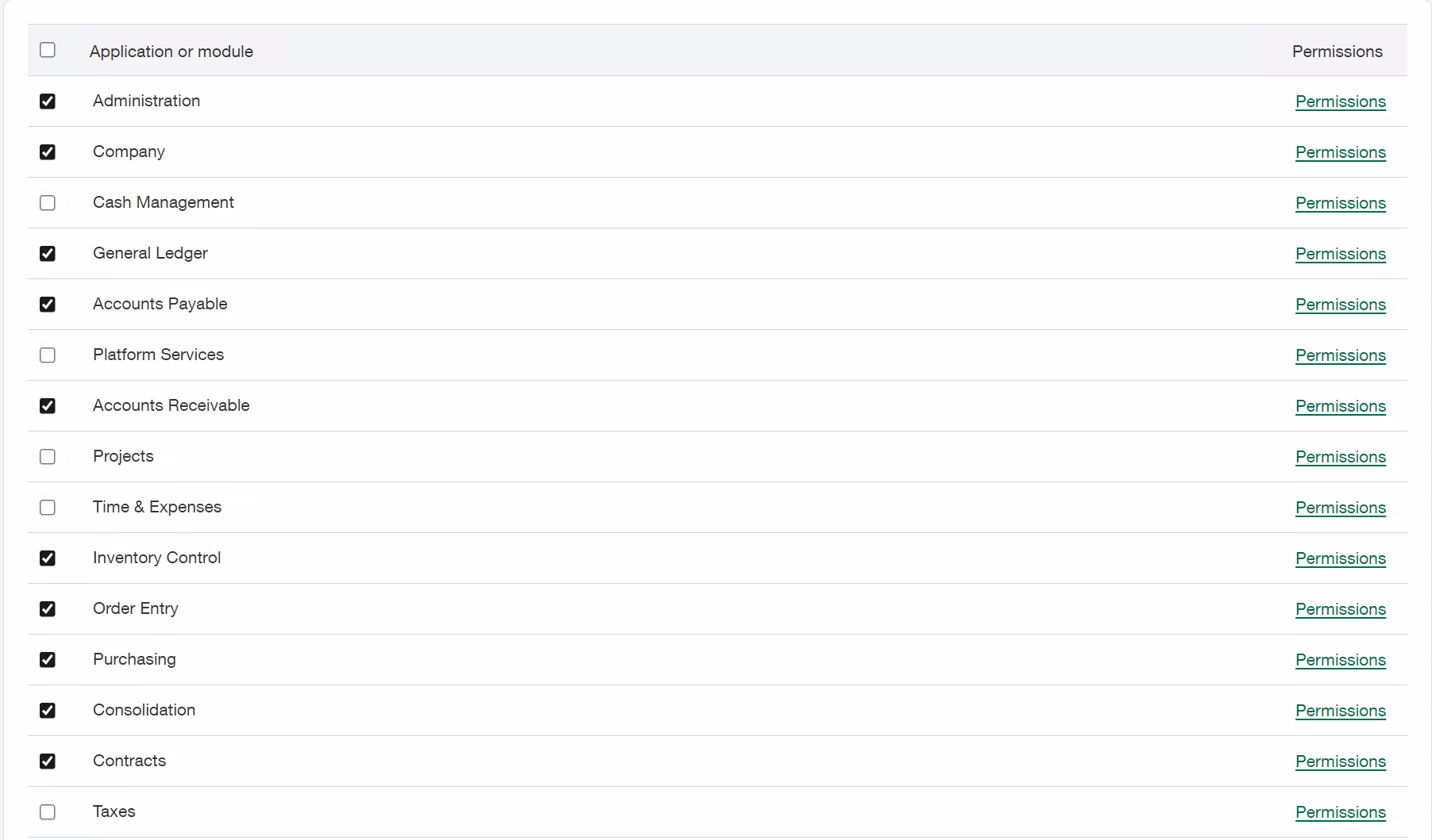 Using the Module Permissions table, check the necessary boxes for each module where applicable.
