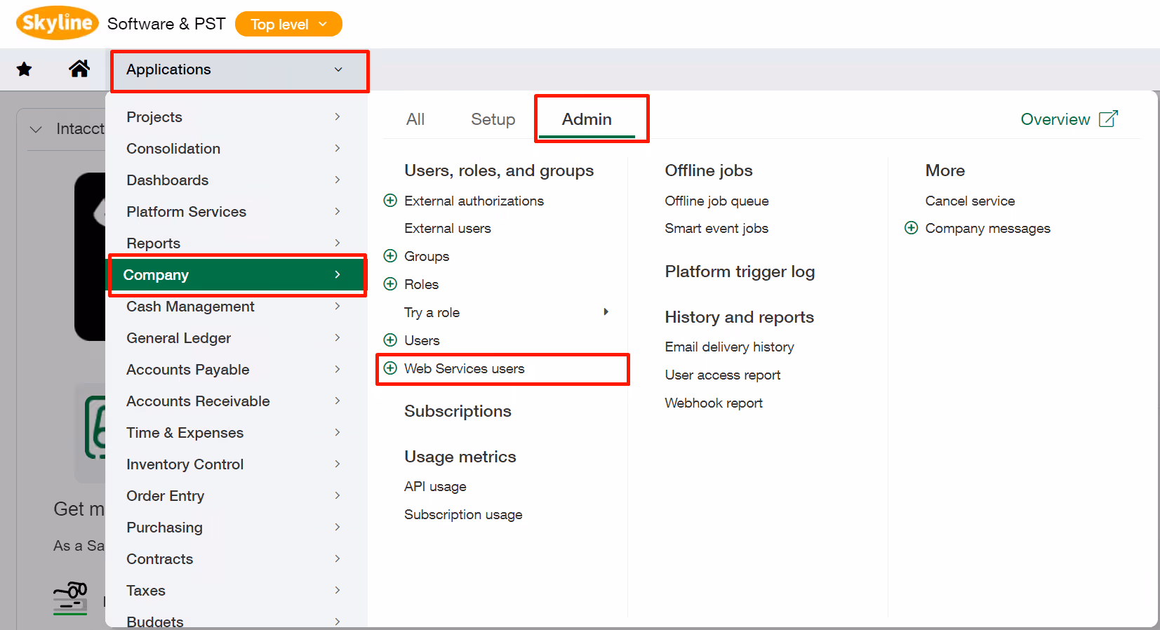 To enable Web Services access in your Sage Intacct instance, please follow these steps: