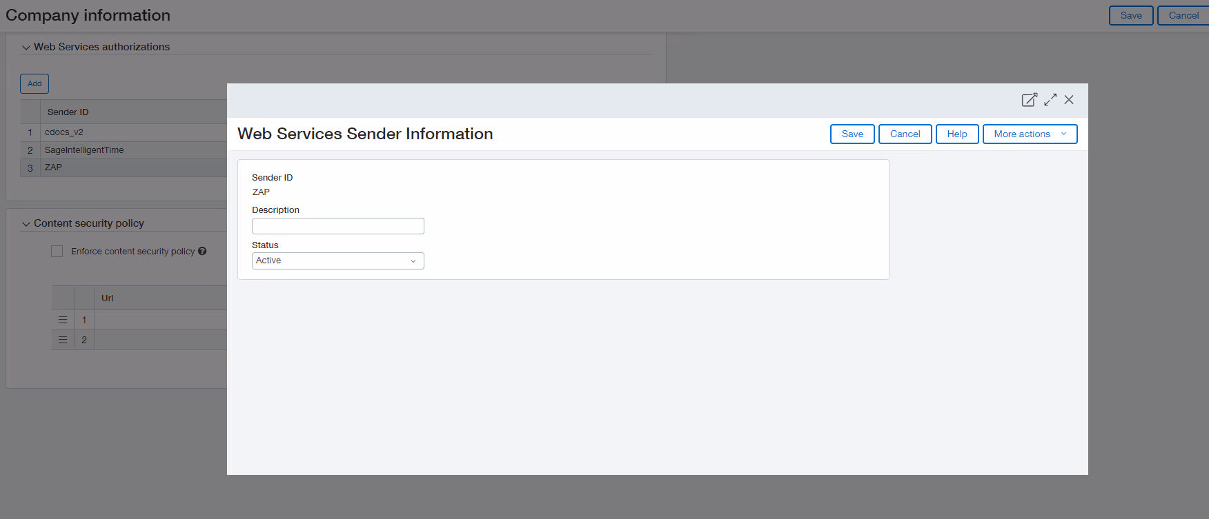 To enable Web Service access to Zap, add the Zap Sender ID to the allowed list, by following the next steps: