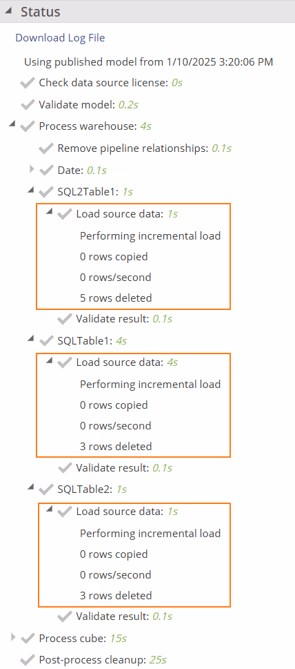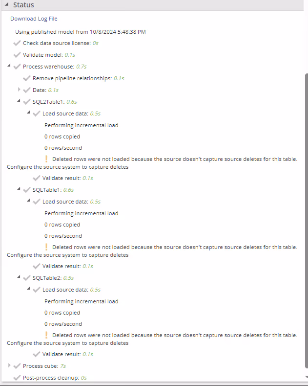 - Must have incremental warehouse load enabled, with Quick process type set to Add only (not required if the pipeline is created as Delta).