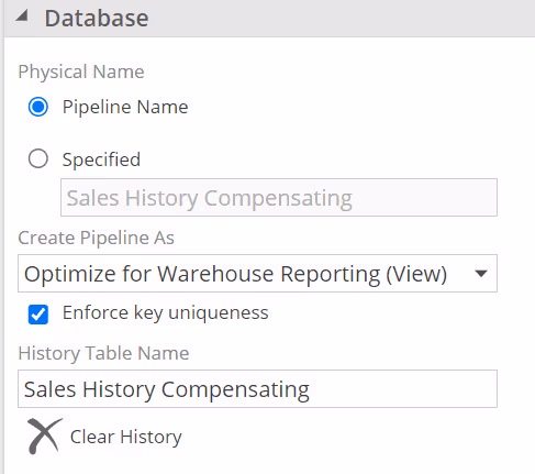 - For most scenarios, pipelines with History should not have Create pipeline as set to Table.