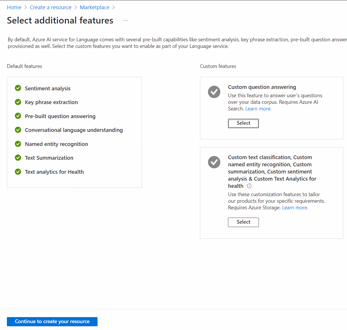 On the initial screen review and make required changes to features, but default values are sufficient for sentiment analysis to work.