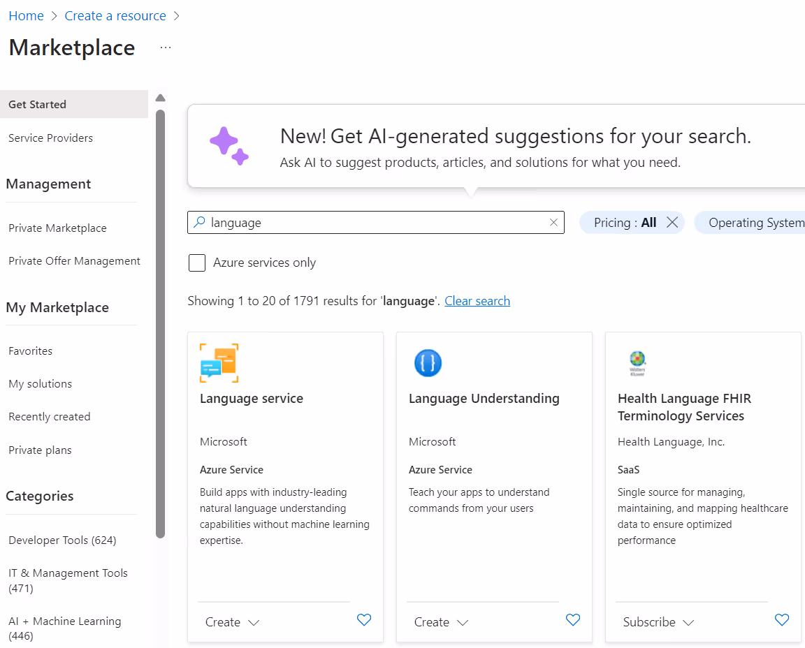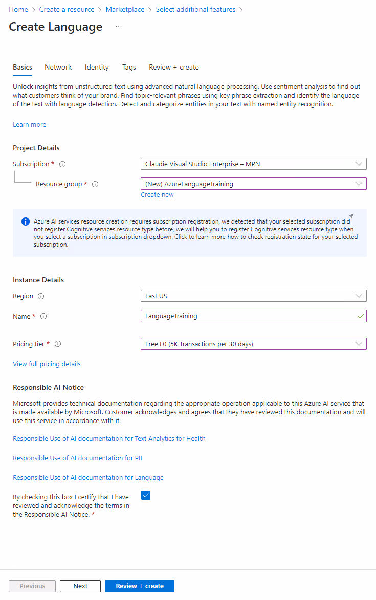 Important: Once you click Review + create, a review screen will be shown and you have to click Create again.