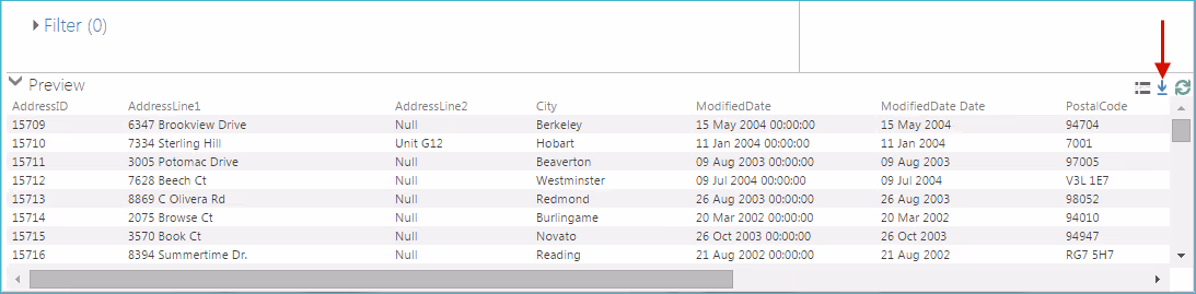 If the sample data icon appears in the top right corner of the Preview pane, the preview contains only a sample of the table's data (typically only 10,000 rows). Otherwise, the specified number of rows that will be downloaded can be determined using one of the following methods: