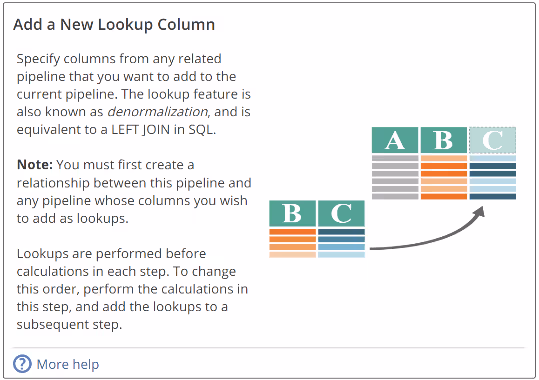 Recall that lookups require an existing relationship to be in place. At the time, we didn't provide the best practice for creating these relationships. Now that we have introduced the importance of keys for data validation, we can state that a relationship should use the key columns of the related Pipeline wherever possible. This ensures that each row on the relating pipeline relates to (and looks up) a single row on the related Pipeline.