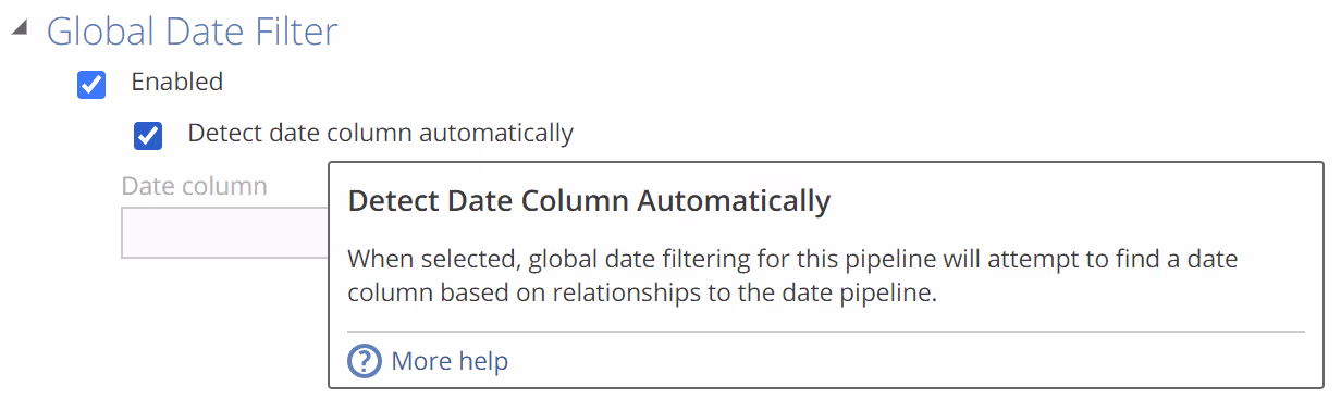 The Global Date Filter – allows you to filter data from the source to the range provided. The Global Data Filter provides one of the simplest and most powerful solutions to optimizing a model. Importantly, only certain fact Pipelines are filtered (recall fact pipelines capture observations and events). Fact pipelines come preconfigured in Solutions. We will look at the specific requirements for the Global Data Filters to take effect later in this article.