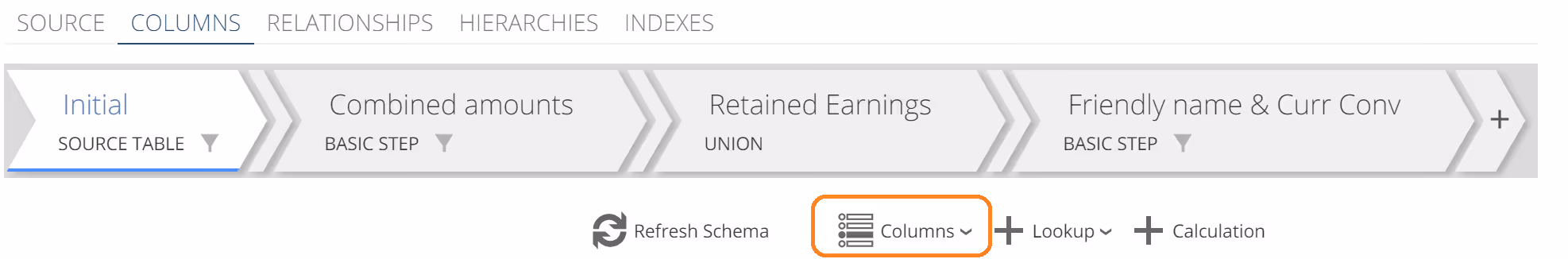 You cannot perform any transforms on a Unified Layer Step, nor change column names and column types. Given that a Pipeline always opens on the final Step, and this final Step is often a Unified Layer step, you will usually need to select a preceding Step to modify a Pipeline.