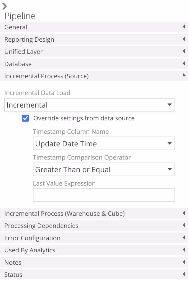 Returning to the discussion at hand, in addition to overriding the column properties, the Unified Layer will also override the Pipeline properties, specifically its Name, Description, and Physical Name fields.