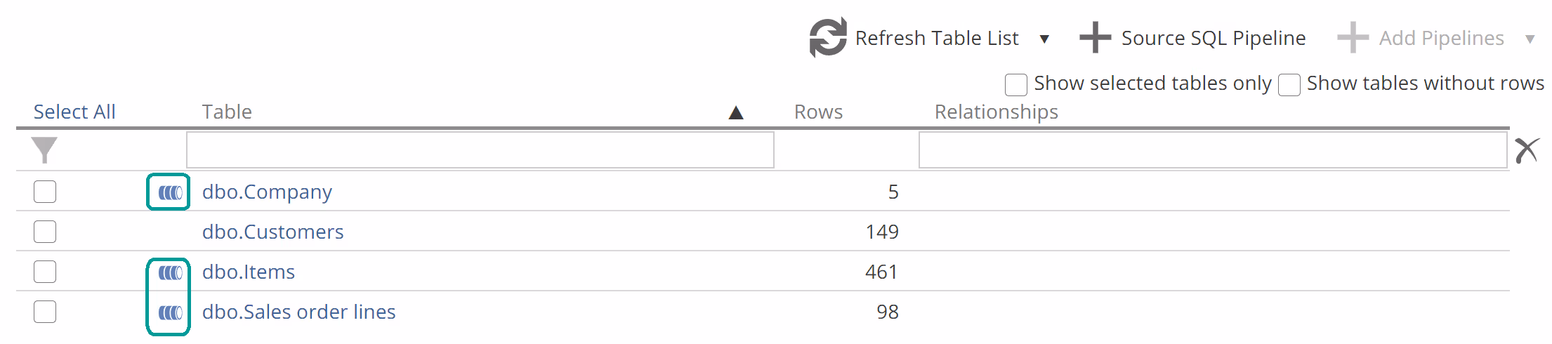 There is one other capability introduced on this step of the wizard, namely Table Merge. As the name implies, this allows you to combine (merge) the rows of similar tables by specifying two or more tables as the source of a single Pipeline. To use this feature, column names should be a close match.