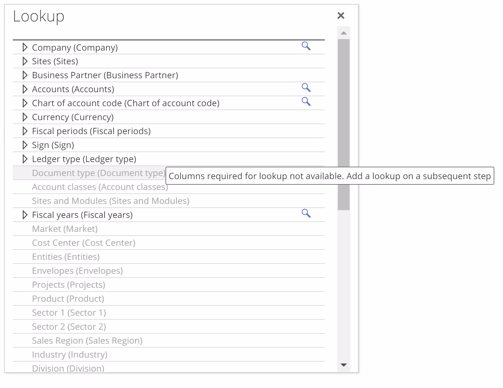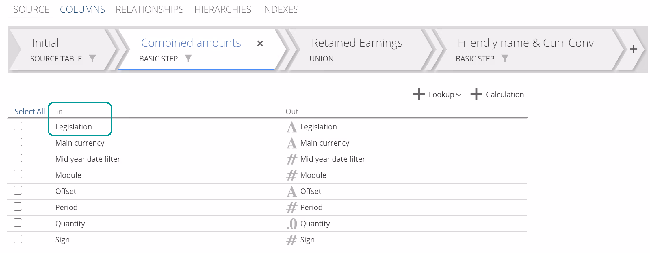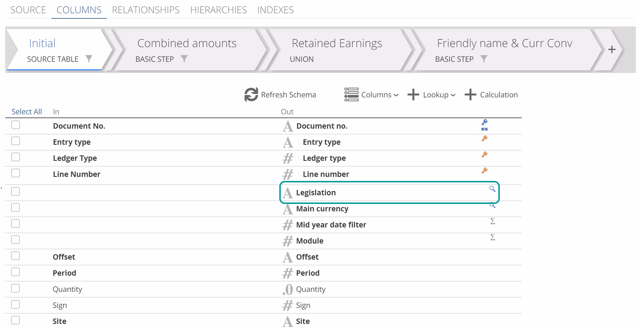 The important thing to notice in this image is that many of the rows show a drop-down arrow for the In column. These rows are mapped to the Unified Layer and standardized. For each mapped row, the Unified Layer will override the following properties, and keep in mind your analytic tool may go directly against the warehouse or a semantic layer (if present):
