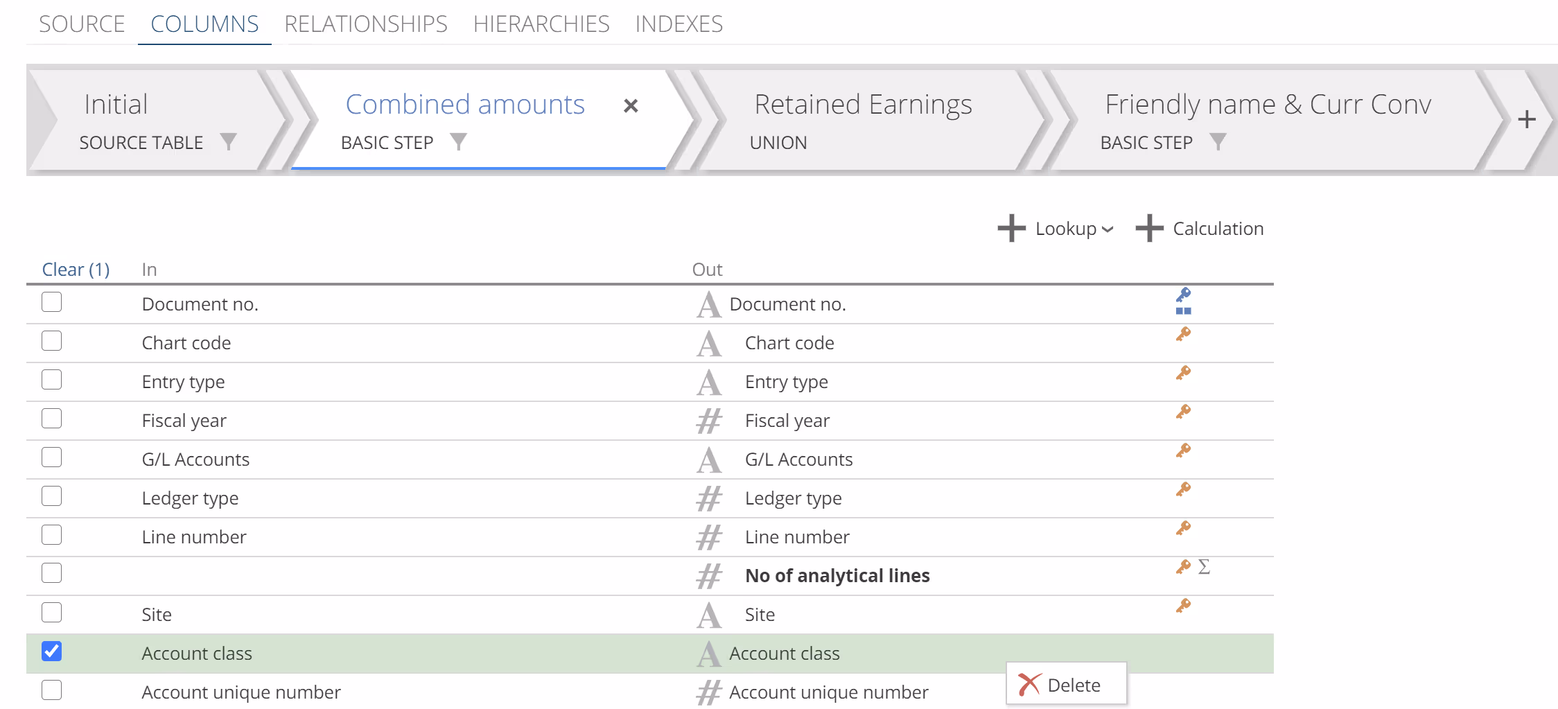 Initial and final step key-indexes – Initial Step keys result in a matching index on the staging table. Final Step keys result in a matching index on the warehouse table (if any).