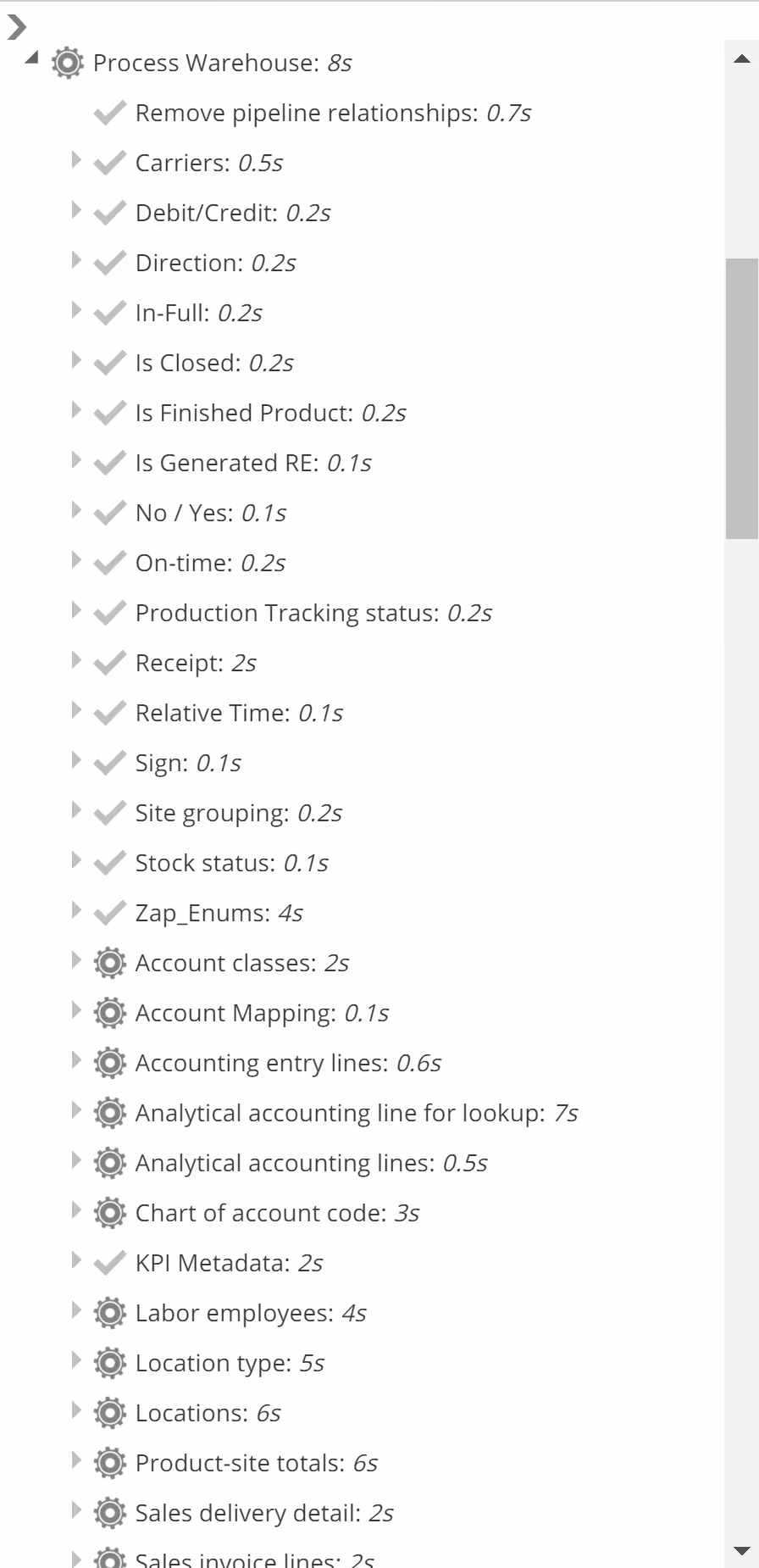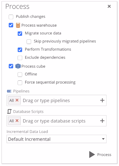 Semantic layer processing – data is migrated from the warehouse tables and views to the semantic layer. Data is only migrated for data Pipelines marked for inclusion in the semantic layer.