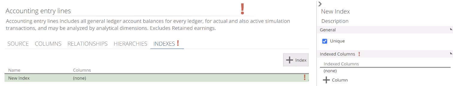 Adding indexes for performance is an advanced optimization technique and is generally only applicable to very large warehouses. For more information on when an index may be applicable, see the Modeling Performance Guide (Coming Soon). It is worth noting that Data Hub always generates the following implicit indexes to optimize processing: