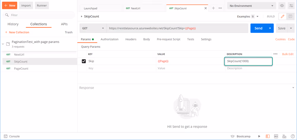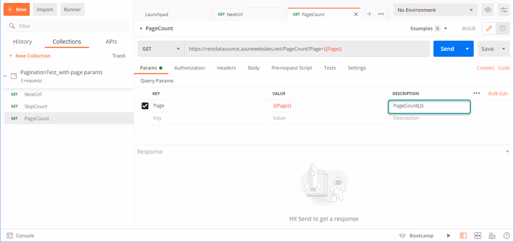 Some endpoints have too much data for a single response. For these scenarios, endpoints support returning multiple pages of data. In Postman, you can specify that the endpoint uses pagination and its type. Data Hub supports three types: